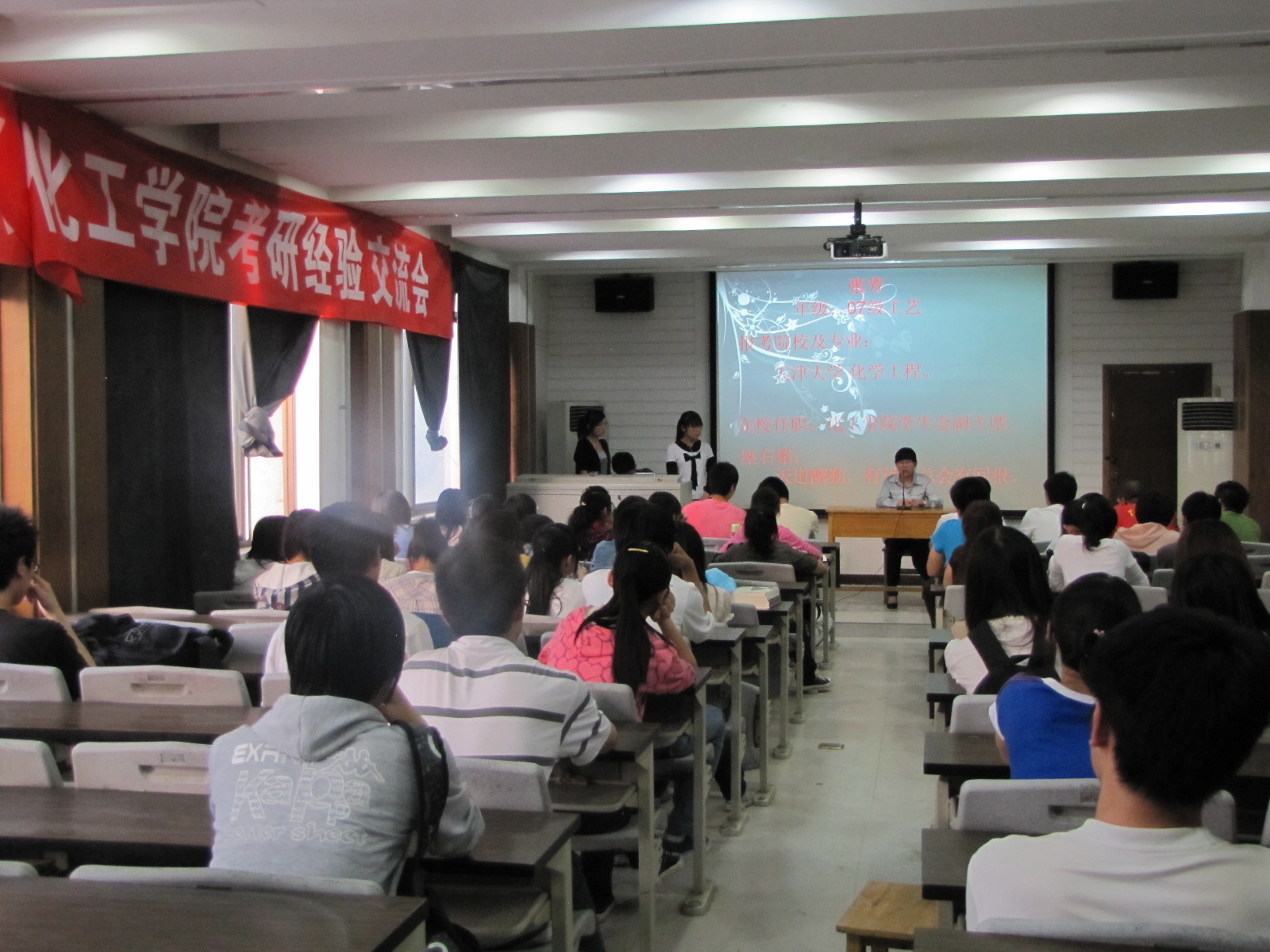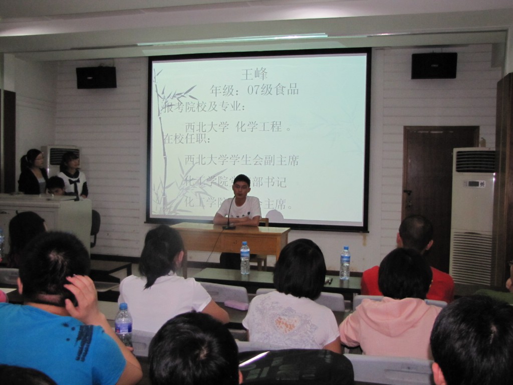 感谢各位学长学姐的悉心指导,通过这次考研经验交流会,大家对考研的过程及过程中的注意事项有了充分的认识,预祝大家在2012年考研成功!
