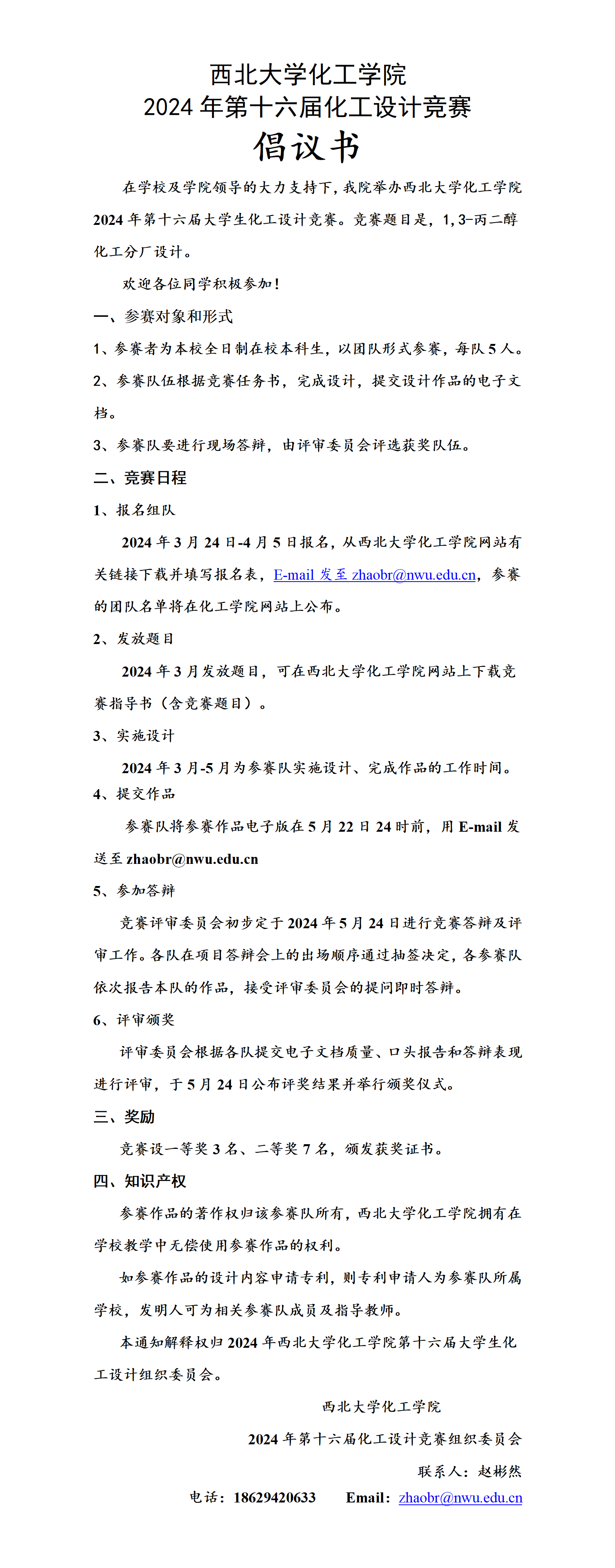 kaiyun官方登录入口2024年第十六届化工设计竞赛倡议书