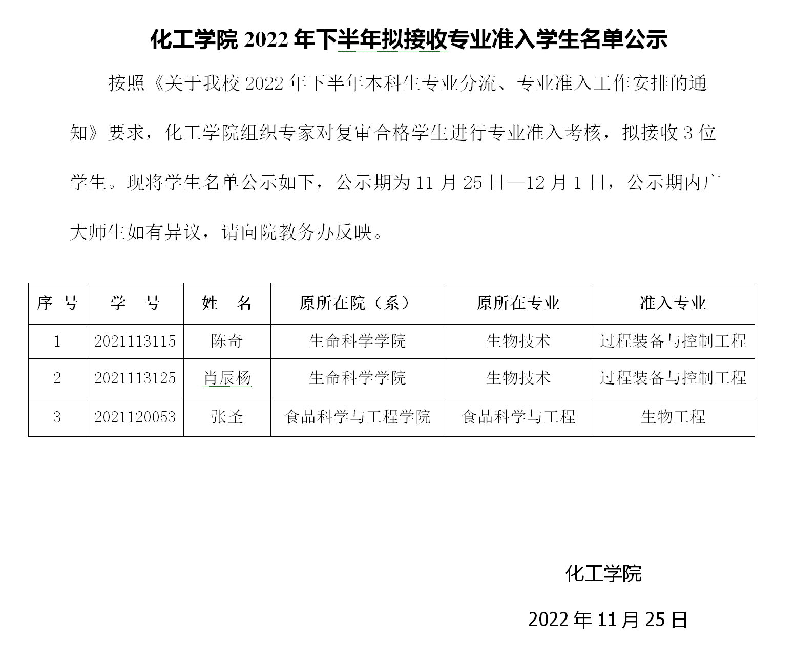 kaiyun官方登录入口2022年下半年拟接收专业准入学生名单公示
