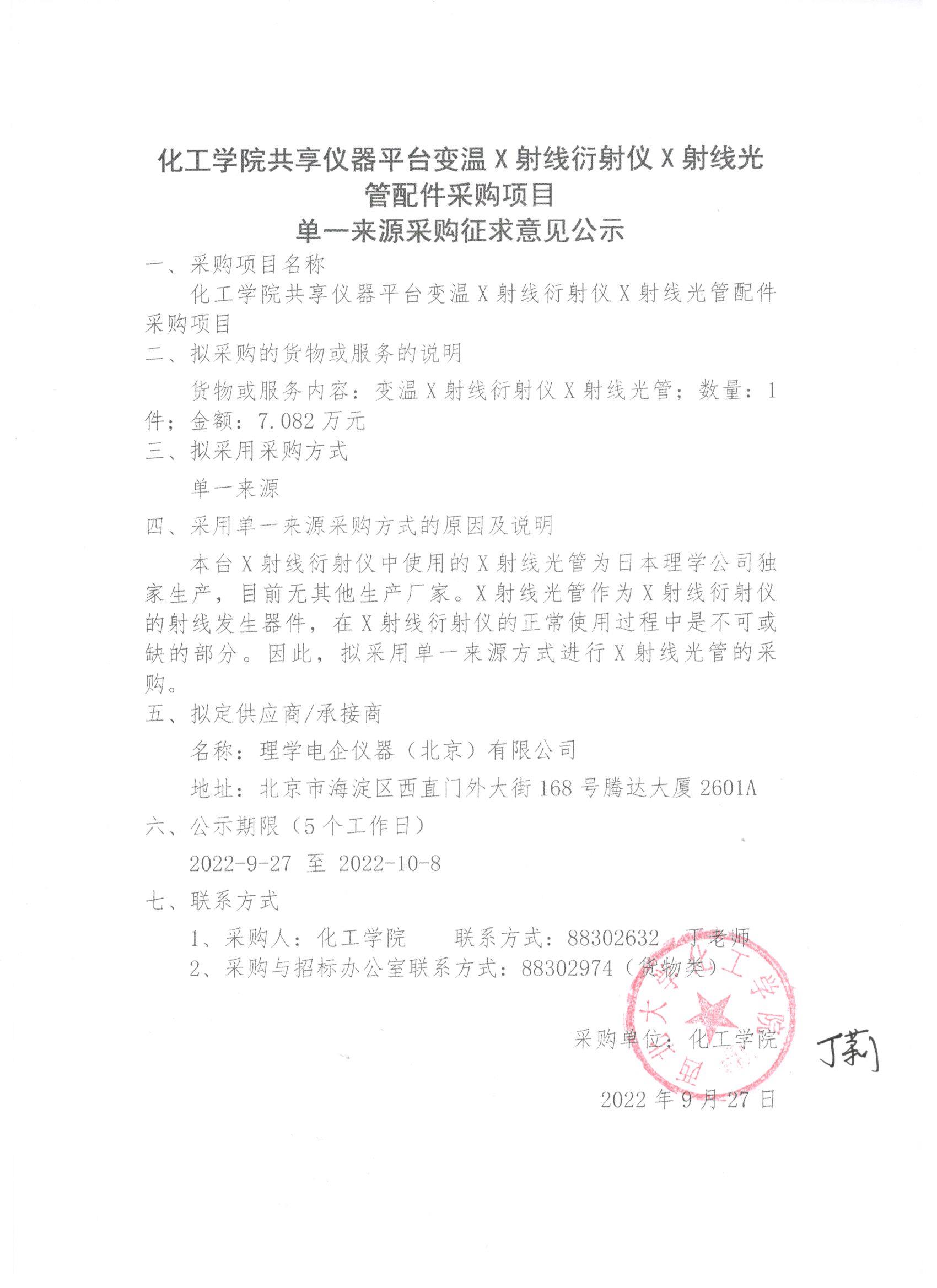 kaiyun官方登录入口共享仪器平台变温X射线衍射仪X射线光管配件采购项目单一来源采购征求意见公示