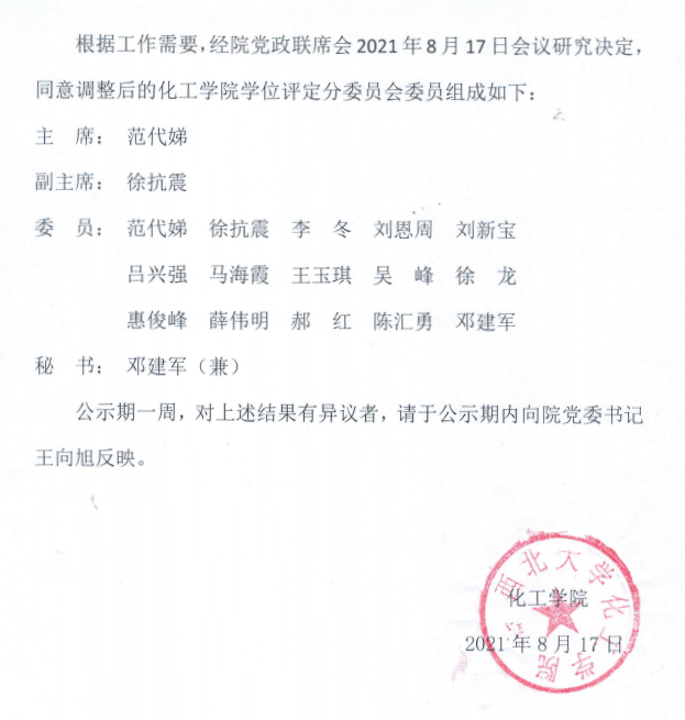 关于调整kaiyun官方登录入口学位评定分委员会委员的结果公示
