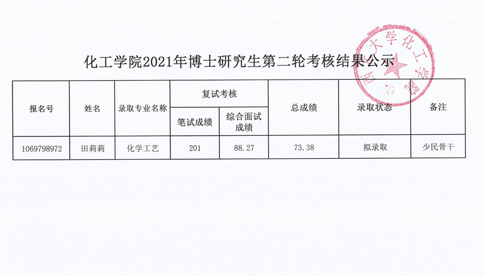 kaiyun官方登录入口2021年博士研究生第二轮考核结果公示