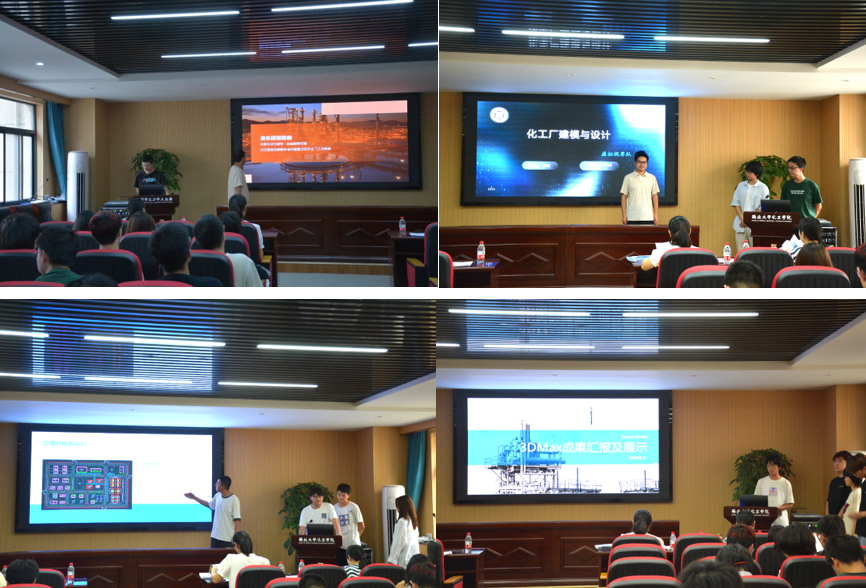 化工厂建模竞赛是大学生运用3ds Max等3D建模软件,围绕给定题目完成化工厂总图布置与三维建模,并进行讲解展示的化工类学科竞赛。本届竞赛共有16支队伍参与角逐。比赛中,各队依次从团队分工、设计思路、漫游视频等方面进行展示,分享了团队在备赛过程中的思考和感悟。