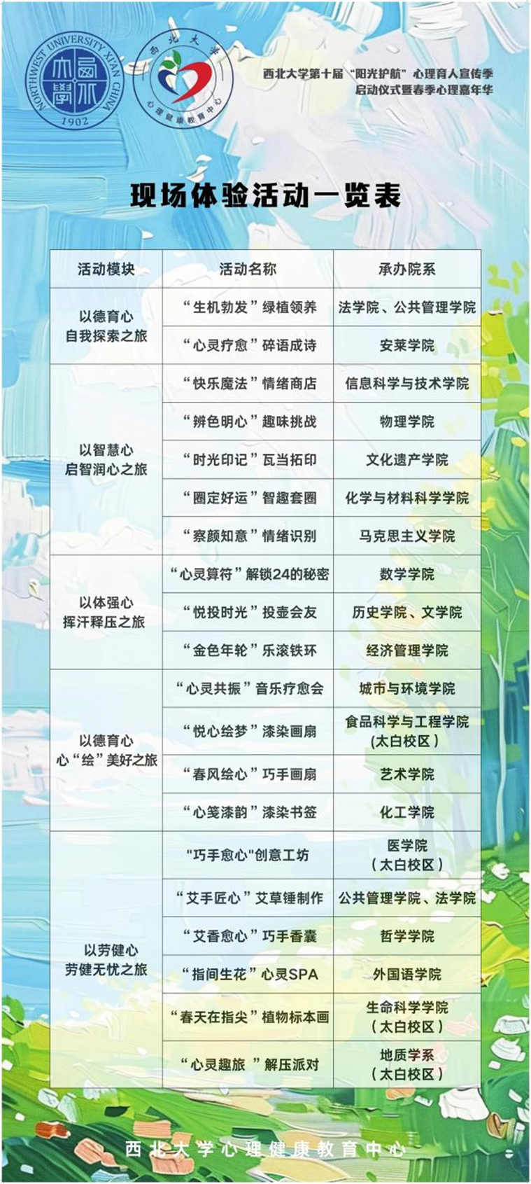 3月25日,开云kaiyun网站第十届“阳光护航”心理育人宣传季启动仪式暨春季心理嘉年华在长安校区北广场顺利举行。kaiyun官方登录入口作为协办单位,精心策划并开展了“漂动风华·漆韵传承—漆染书签”活动,心理协会积极响应学院号召,为同学们带来了一场别开生面的心理健康体验之旅。本次“漂动风华·漆韵传承—漆染书签”活动秉承“心理育人”理念,旨在通过非遗技艺与心理健康教育的深度融合,引导同学们走出虚拟网络,亲近自然,自觉关注心理健康。