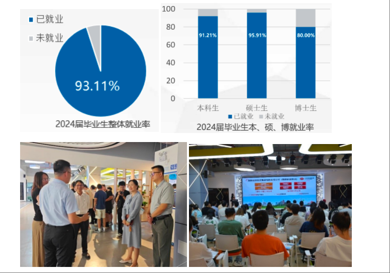 就业工作前移,多措并举提升毕业生专业核心竞争力,持续发力全员做好毕业生就业工作,实现毕业生更充分高质量就业,2024届毕业生整体就业率为93.11%,圆满完成学校既定目标任务。