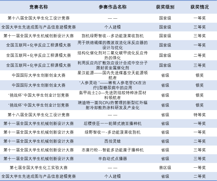 学生参与学科竞赛获奖情况