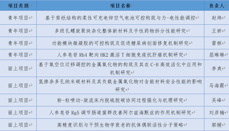 获批国家自然科学基金9项